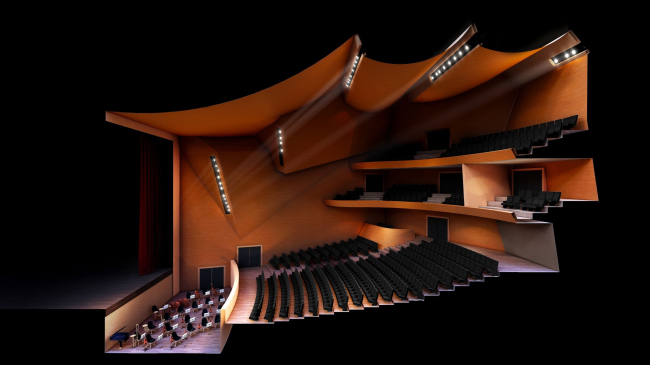 Здание Coop Himmelb(l)au в Кемерове – вторая очередь (генподрядчик – ). Первая, образовательная, уже строится и должна быть сдана в 2021 году: это будут хореографическая академия (филиал МГАХ), высшая школа музыкального и театрального искусств (филиал РГИСИ), обычная и музыкальная средние школы (филиал ЦМШ при МГК), общежития для школьников и студентов, жилье для преподавателей.