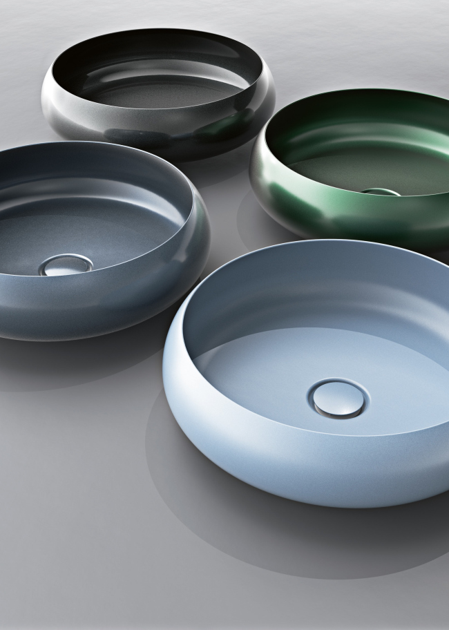 Цветные умывальники или душевые пространства создают эффектные акценты в ванной комнате, позволяя создавать интригу в архитектуре: луч света можно направить на зону умывания, выбрав круглый умывальник BetteCraft ярко-зеленого цвета или мягкий оттенок синего. Глазурованная титановая сталь, великолепно приведенная в формах продукции Bette, придает привлекательную визуальную глубину.