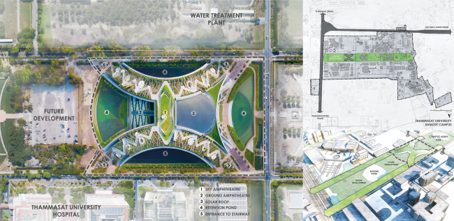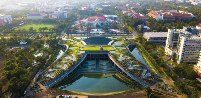 Для местных жителей искусственная насыпь служит общественным пространством, откуда открывается панорамный вид на окрестности Бангкока, для студентов – учебной аудиторией со свободным планом, а мелкие животные нашли здесь свой дом. Отметим, что бюджет проекта составил 31,6 млн долларов США.
