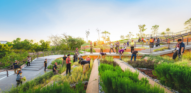 Ландшафтное бюро Landprocess из Бангкока превратило крышу одного из старейших университетов Таиланда в городской огород, совмещенный с общественным пространством и резервуарами для хранения дождевой воды.