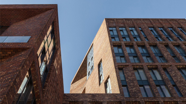 Ключевой проект для DNK ag – жилой комплекс «Рассвет» в окружении исторических кирпичных зданий на Красной Пресне. Здесь кирпич – тоже «контекстуальный» материал, вписывающий новое сооружение в окружение. На фасадах использованы разные типы текстурной кладки, слегка отличающиеся друг от друга и придающие комплексу разнообразие. Наталья Сидорова подчеркнула, что для корпуса 3.20 на заводе «Сафоновский клинкер» в Смоленской области был изготовлен кирпич специального формата несмотря на достаточную «бюджетность» проекта. По ее словам, это отражение важного современного тренда – растущей кастомизации кирпичного производства. В результате, как рассказала архитектор, получившиеся фасады выглядят очень привлекательно, и, глядя на фотографии, многие не верят, что это Москва, а не Западная Европа.