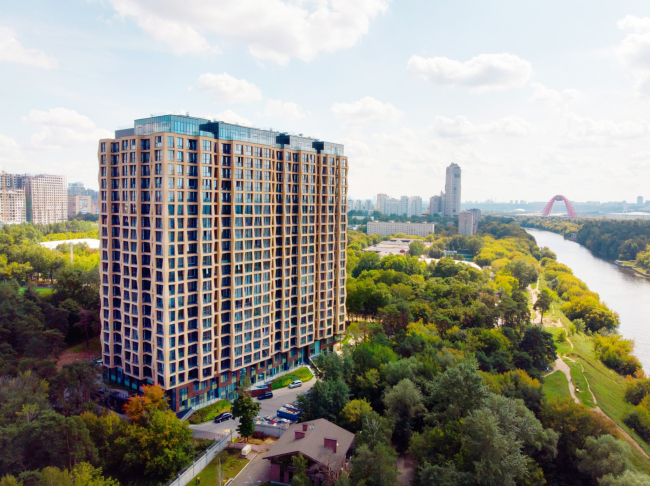Этот приметный жилой комплекс премиум-класса, спроектированный архитектурным бюро «Остоженка», находится всего в 150 метрах от берега Москвы-реки. ЖК состоит из трех 22-этажных домов, объединенных стилобатом и образующих полуквартал. Выбор архитектурных решений и материалов обусловлен желанием «породнить» современный многоэтажный дом с его природным окружением – лесом и рекой.