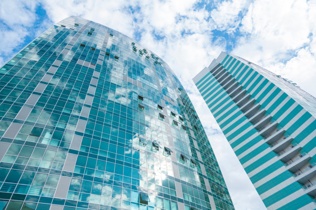 Третий объект в нашей подборке – МФК «Флотилия». Четыре небесно-голубые башни этого жилого квартала возведены в районе Ховрино Северного округа Москвы. Главная архитектурная особенность зданий – эффектные светопрозрачные фасады, напоминающие паруса.