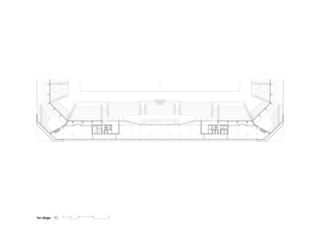 Футбольный стадион на 12 500 болельщиков построен в спортивном комплексе «Тюильер» на севере Лозанны, где уже есть девять футбольных полей. Он как будто открывает для посетителя этот «ансамбль» со стороны города, поэтому в проекте важны общественное пространство и взаимодействие сооружения с окружением.