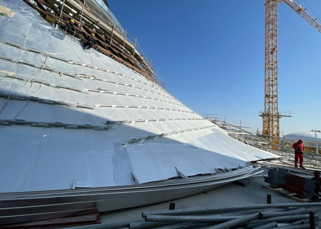 Важно отметить, что детальный инжиниринг и проектирование проекта было выполнено в сложный период пандемии, без возможности посещения строительной площадки. Это возможно только благодаря глубокому пониманию взаимосвязей и особенностей реализации кровли такой высокой сложности, тесному согласованию со всеми участниками и на всех этапах.