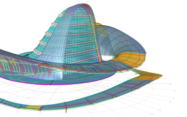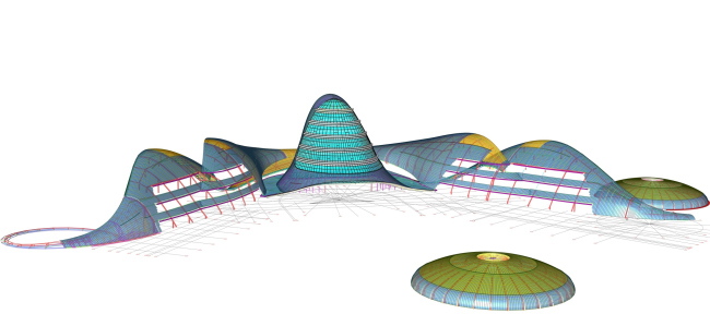 Сегменты труб под-конструкции – были определены и установлены при помощи геодезиста, чтобы идеально попасть в созданную архитектором форму оболочки.