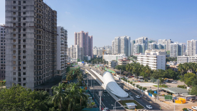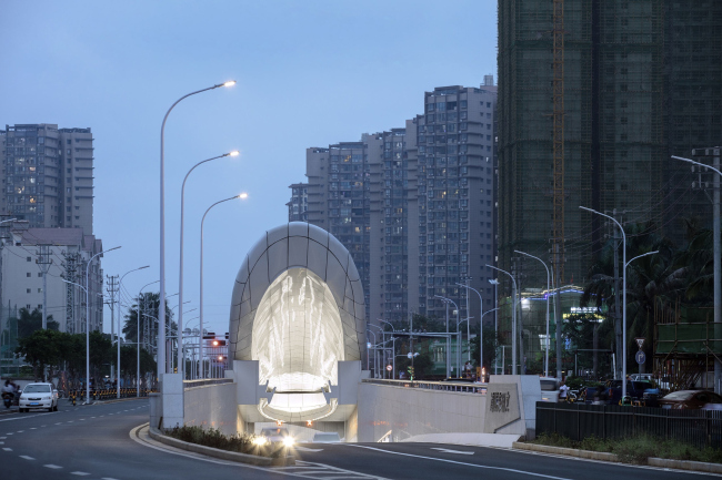 В Хайкоу – столице островной провинции Хайнань – завершено строительство трех порталов, оформляющих въезды в Восточный тоннель Вэньмин. Магистраль соединяет новый район города с его «старой» частью и проходит непосредственно под рекой Нанду. Въездные сооружения, напоминающие своим внешним видом раковины морских гребешков, разработаны пекинским бюро Penda China.