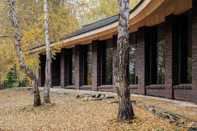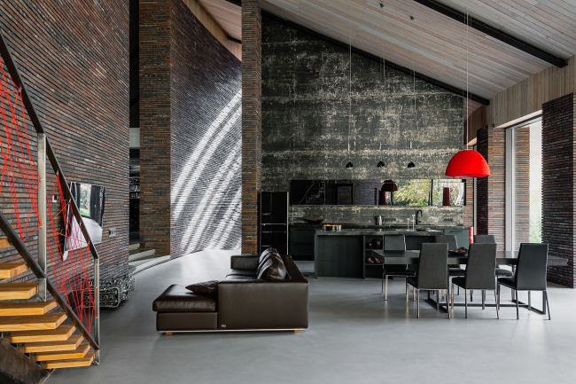 В проекте большой виллы на краю Иркутска щедро использован легендарный кирпич датского завода Petersen Tegl: его вытянутый формат 528x108x37 мм придает особую выразительность кладке.