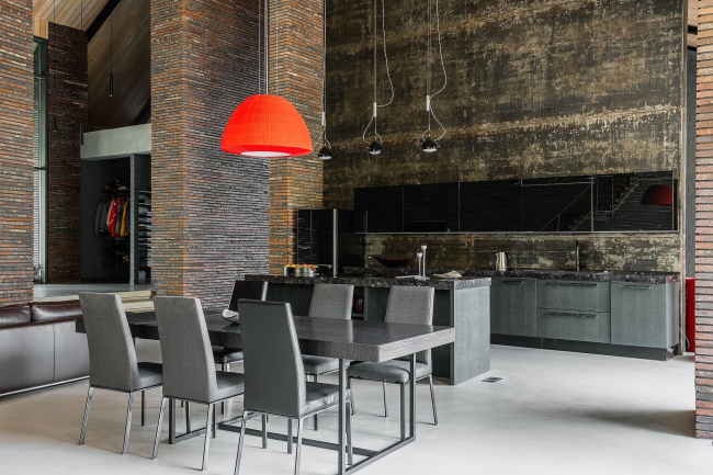Кроме того, для заказчика приоритетной была задача экологичности используемых материалов. Немаловажным фактором также явилось то, что кирпичным стенам в интерьере не нужен косметический ремонт. По его словам, сделал один раз – и забыл.