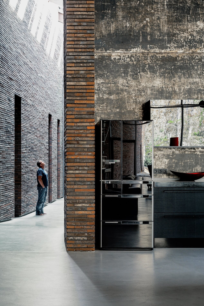 – Характер проекта изначально складывался как вневременной, а возможно даже внеисторический. Концепция состояла в создании пространства между мегалитическими объемами, которые как бы появились раньше интерьера и экстерьера – нечто вроде «пост-обжитых» римских руин. Для этих целей прекрасно подошел ригельный формат кирпича, обеспечивающий целостный, монолитный характер кладки.