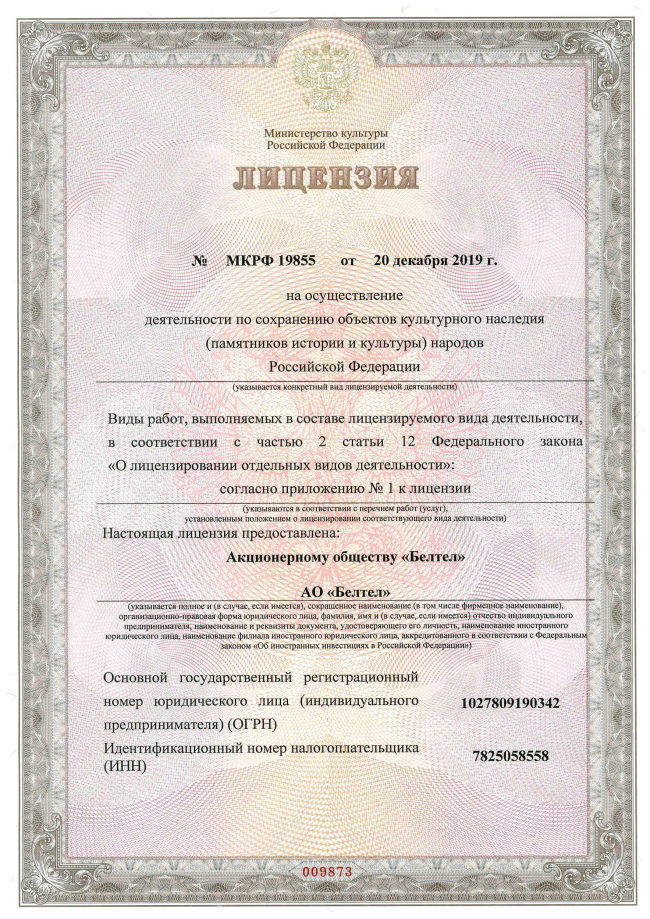 Для восстановления объектов культурного наследия России нужна . С 2011 года функции лицензирующего органа выполняет Министерство Культуры.