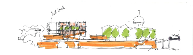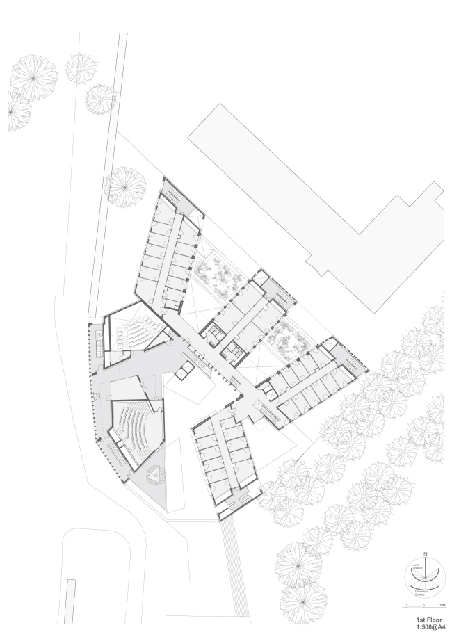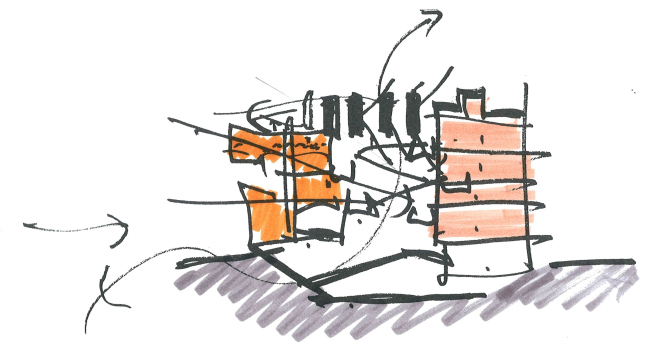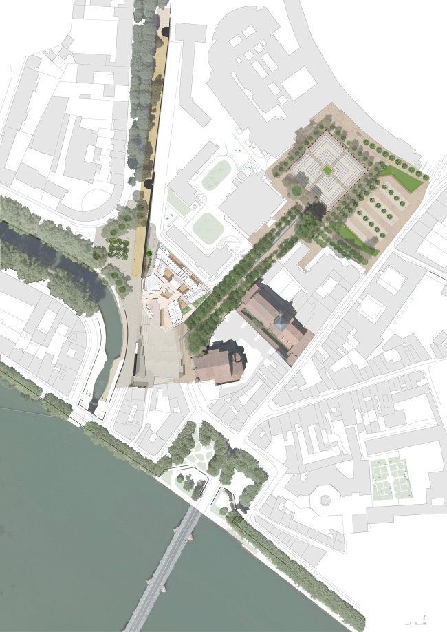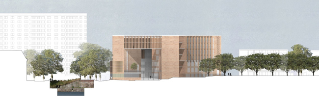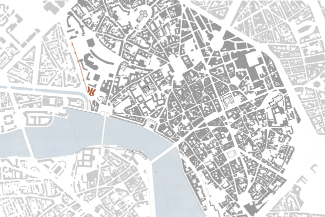Участок для строительства расположен в центре города, в проеме городских стен: дублинские архитекторы Grafton предпочитают говорить при этом о пороге, а не о границе. Рядом – разнообразные кирпичные церкви и дома, из этого материала выстроены и укрепления, им же облицованы набережные Гаронны и канала, на который обращено новое здание. Поэтому и на фасадах школы использован кирпич – местный, традиционный, удлиненного «римского» формата: ведь юг Франции хранит живую память об античности.