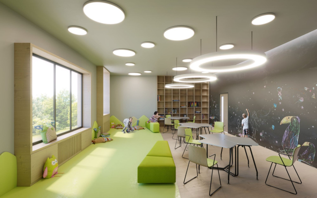 Помимо современных учебных аудиторий со стенами, на которых можно писать и рисовать, в образовательном комплексе предусмотрено большое количество дополнительных опций: медиатека и школьный коворкинг, помещения для факультативных занятий, лаборатории, кабинеты для изучения иностранных языков, информационный центр и IT-полигон, арт-блок, творческие мастерские и студии звукозаписи.