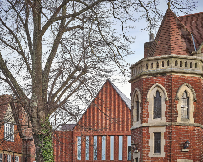 Новый корпус школы Скиннерс по проекту Bell Phillips Architects к юго-востоку от Лондона продолжает викторианскую традицию кирпичной архитектуры.