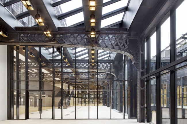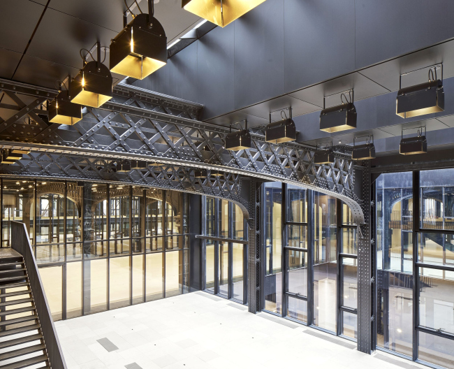 На площади в 32 000 м2 размещены самые разные учреждения и функции. Первый этаж занимают 13 магазинов и кафе, а также почтовое отделение. Выше бывший «завод» заменили фабрики наших дней – офисы, ждущие своих арендаторов (14 400 м2). Исторический металлический каркас полностью открыт в интерьер и дополнен современными деталями, например, антресольным этажом-галереей на втором этаже. Высота потолков – 6,8 м, но арендатор может ограничиться пространством вполовину ниже.
