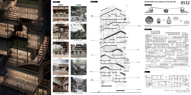 Этот небоскреб как конструктор собран из традиционных домов хмонгов – древнего китайского народа. У них свой язык, обычаи и жизненный уклад, но в современном мире культуру малочисленных народностей все труднее сохранить. Это касается и архитектуры – многие дома хмонгов уже разрушены, и предложенная идея с небоскребом могла бы стать шансом на новую жизнь для уцелевших построек и на сохранение привычного быта для их владельцев.