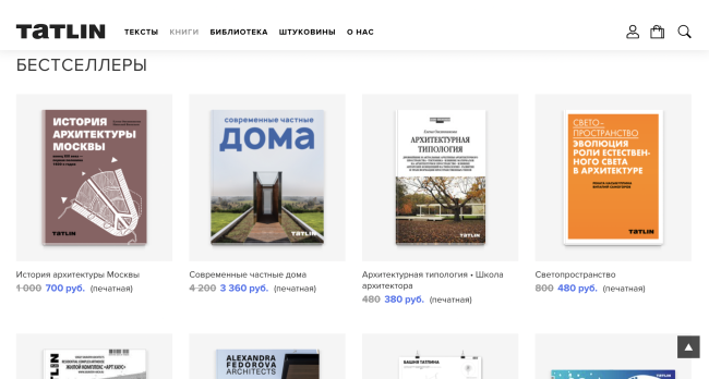 Книги из серии обойдутся в сумму от 430 до 580 рублей, серия , посвященная выдающимся постройкам эпохи авангарда, стоит от 290 до 550 рублей, цены на журналы варьируются от 290 до 380 рублей, а на выпуски – от 360 до 770 рублей.