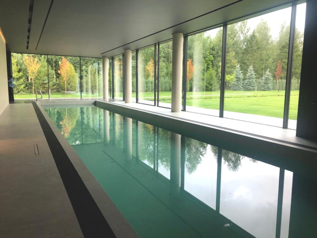 Особого внимания заслуживают конструкции Keller, использованные при панорамном остеклении зоны спортзала и зоны бассейна.
