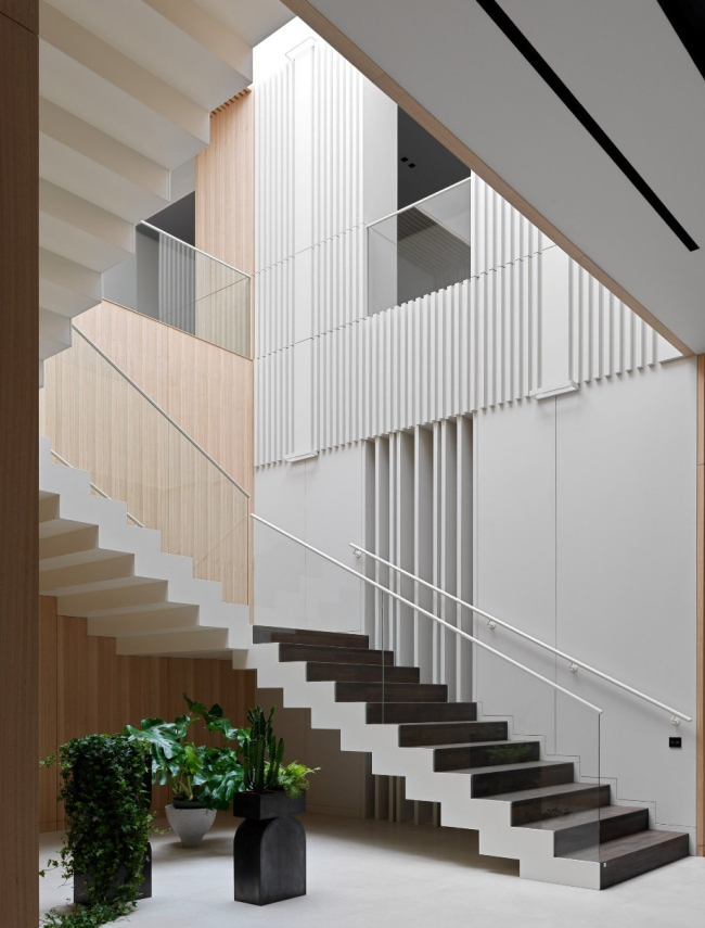 Дом в поселке “Миллениум Парк”Фотография предоставлена компанией ERGOHAUSСтекло присутствует не только на фасадах, но и в интерьере: компания ERGOHAUS осуществила проектирование, поставку и монтаж межэтажной лестницы от фабрики Alber и цельностеклянные ограждения лестницы и второго света от фабрики Q-railing.