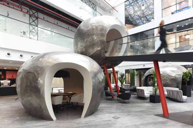 Архитекторы спроектировали северное и южное лобби нового делового комплекса. Нужно было организовать пространство традиционным образом (ресепшн, зона ожидания и зона турникетов) и оформить его натуральными отделочными материалами. Изюминкой этого проекта становятся высокие (7 метров) потолки, большая площадь остекления и активное вертикальное озеленение.
