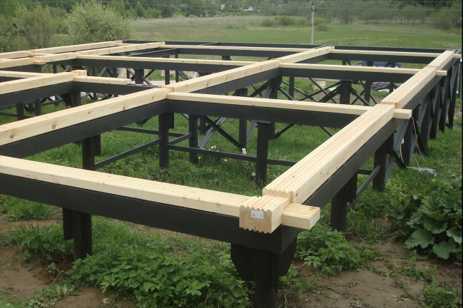 Каждый тип утепляется по-своему. Сложнее всего провести термоизоляцию столбчатой или свайной конструкции. В основе дома «на ножках» – столбы/сваи, выполненные из разных материалов: дерева, металла, бетона, кирпича. На эти «ножки» укладывают ростверк, то есть раму, которая принимает на себя давление несущих стен. Чтобы собрать утеплительный «пирог» на конструкции такого типа, необходимо сначала выстроить между столбами/сваями фундаментную стену – забирку. На нее будут крепиться слои «пирога».