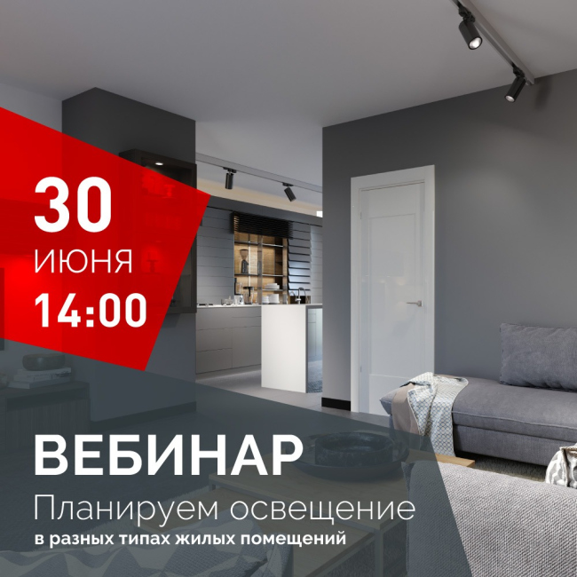 30 июня 2021 года с 14:00 до 15:00 (мск) пройдет вебинар «Планируем освещение в разных типах жилых помещений»