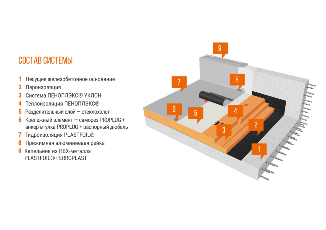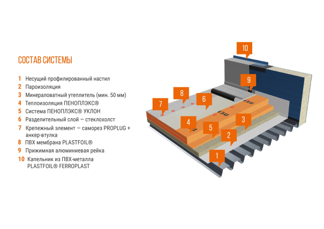 Устройство кровли из ПВХ мембран производства компании «ПЕНОПЛЭКС» –