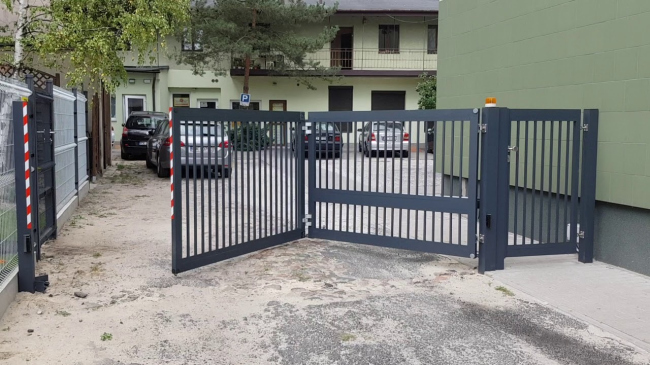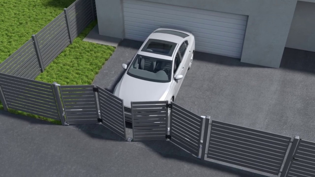 В складных воротах может использоваться тот же автоматический привод, что и в стандартных распашных воротах. Управляет частями забора специальный затвор, который в заводских условиях можно интегрировать в ворота любого дизайна.