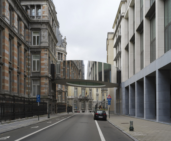Мост, похожий на подброшенное в воздухе кольцо, соединяет второй этаж Дворца нации – место заседания бельгийского парламента – с третьим этажом нового административного корпуса, расположенного на противоположной стороне улицы Лёвенсестрат в центре Брюсселя. Проект разработала местная архитектурная мастерская Office Kersten Geers David Van Severen.