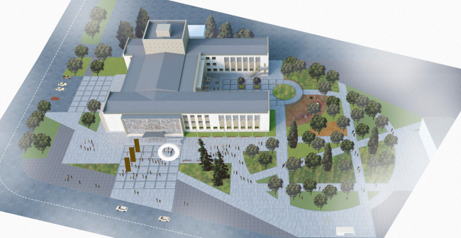 Руководство города стремится к комплексному развитию территории, поэтому в состав проекта вошло и благоустройство прилегающей территории, которая станет новым общественным пространством для этой части города. Авторы решили перепланировать и включить в проект реконструкции и прилегающую к ДК территорию – в сквере планируется выполнить благоустройство и обустроить его для отдыха и проведения мероприятий на открытом воздухе.