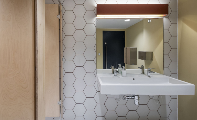 Но самым заметным компонентом проекта все же стала не его экологическая составляющая, а новый фасад. Он дополняет исторический и помещает его в контекст: как для синагоги выбраны мавританские мотивы, напоминающие о Пиренейском полуострове и Магрибе как регионе сефардских евреев, так и для современного корпуса создан орнамент на основе восьмиугольных фигур. Прорезанные в поверхности из стали кортен узоры одинаково эффектно выглядят и днем, и в темное время суток, когда они подсвечены изнутри.
