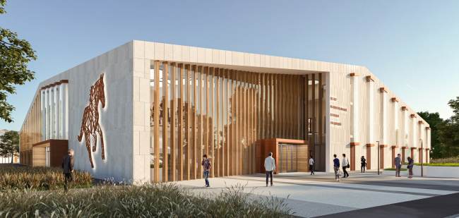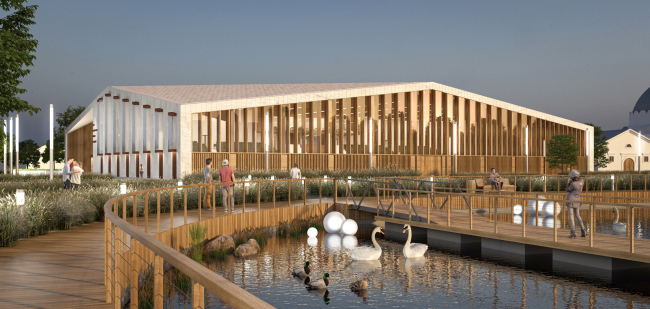 На территории ВДНХ появится новый конноспортивный манеж: его авторы обращаются к традиционной для типологии форме и материалам, трактуя их как современный парковый павильон.