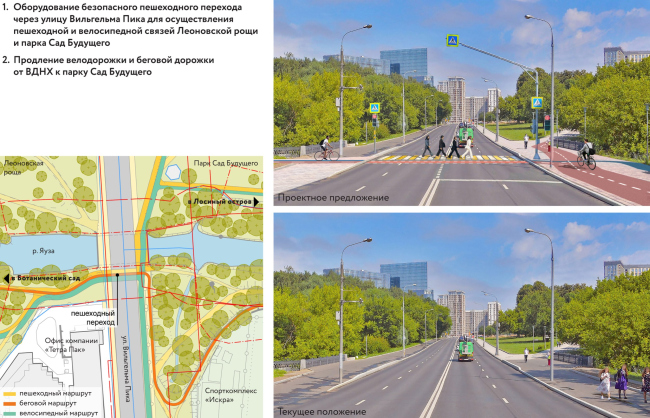 Предложение №1. Связь вдоль Яузы через МЦК, улица Вильгельма Пика. «Супер парк Яуза». Концепция по развитию связности территорий вдоль реки Яуза