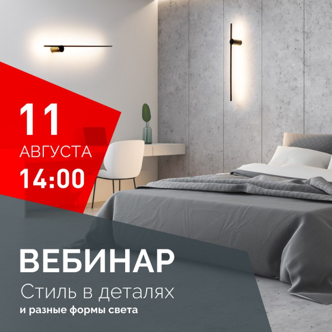 11 августа в 14:00 (мск) ждем вас на вебинаре по интерьерному освещению «Стиль в деталях и разные формы света».