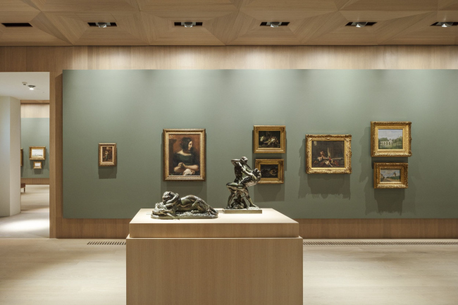 Òðè äðóãèõ çàëà âìåñòèëè êîëëåêöèþ ôðàíöóçñêîé æèâîïèñè, ïðåèìóùåñòâåííî – èìïðåññèîíèñòîâ. Îáèëèå äðåâåñèíû äóáà, â òîì ÷èñëå íà óçîð÷àòûõ ïîòîëêàõ, è ïðèãëóøåííûé òîí ñòåí îáúåäèíÿåò èõ ñ èíòåðüåðàìè óñàäüáû, ñ êîòîðûìè ïîäçåìíîå êðûëî ñâÿçûâàåò ñâåòëàÿ ïðîñòîðíàÿ ëåñòíèöà.