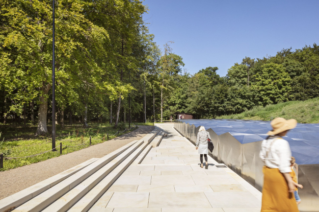 Èìåííî çàëû èìïðåññèîíèñòîâ âûñòóïàþò íàðóæó, â ïàðê â âèäå ìíîãîãðàííîé íåâûñîêîé ïëàòôîðìû èç ïîëèðîâàííîé ñòàëè, íàçâàííîé «Íåáåñíûé ñàä»: îíà îòðàæàåò è ïðåëîìëÿåò ñîëíå÷íûå ëó÷è. Ýòî îòñûëêà ê ïðèíöèïàì ðàáîòû õóäîæíèêîâ-èìïðåññèîíèñòîâ, ÷üè êàðòèíû õðàíÿòñÿ âíèçó, òàê êàê âàæíîé çàäà÷åé äëÿ íèõ áûëî ïåðåäàòü â æèâîïèñè ñâåò è åãî èçìåí÷èâîñòü.Ìóçåé Îðäðóïãîð – ïîäçåìíîå êðûëîÔîòî © Laura Stamer
