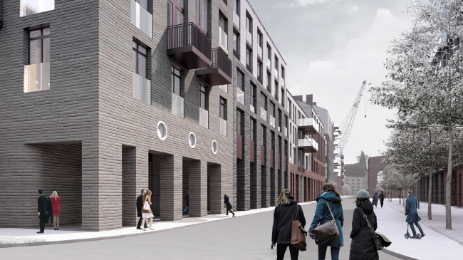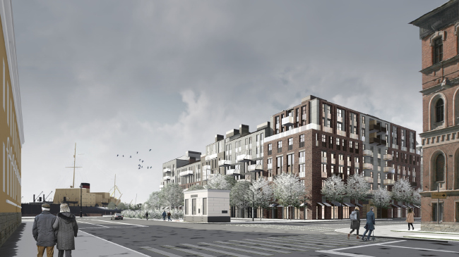Как видим, жилой комплекс премиального класса в центре Петербурга представляет собой результат вдумчивой аналитической работы с контекстом – помимо отклика на визуальные особенности окружения он настроен на продолжение и развитие структуры городской ткани, восходящей к регулярной планировке XVIII века, причем некоторые ее особенности намеренно акцентированы ради ответа на особенности участка и поставленной задачи. Небольшая, комфортная высотность задана ограничениями и поддержана элитным статусом жилья, а подчеркнутое ритмическое разнообразие становится откликом на мелкую нарезку фасадов исторической застройки. В конечном счете комплекс становится своего рода «переходным звеном» между двумя очень разными частями города: парадной и промышленной. Портовые краны и корабли, как музейные, так и строящиеся, придают обстановке некоторую пикантность, и тем не менее ЖК становится очередным шагом городской ткани, комфортной и обитаемой, в сторону расширения-реплицирования на основе модуля, заданного когда-то Трезини и Леблоном.