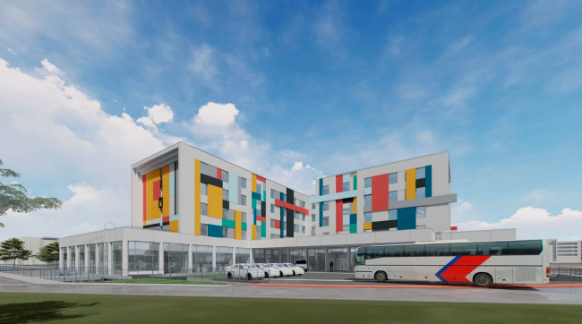 Гостиница расположится почти на выезде из бывшего терминала «Пулково 2», который в будущем, вероятно, будут использовать для бизнес-авиации. Напротив располагается квартал с приметными зданиями, среди которых, например, построенные по проекту польского бюро D3A гостиница Crowne Plaza и три бизнес-центра, в отделке которых использованы цветные ламели.