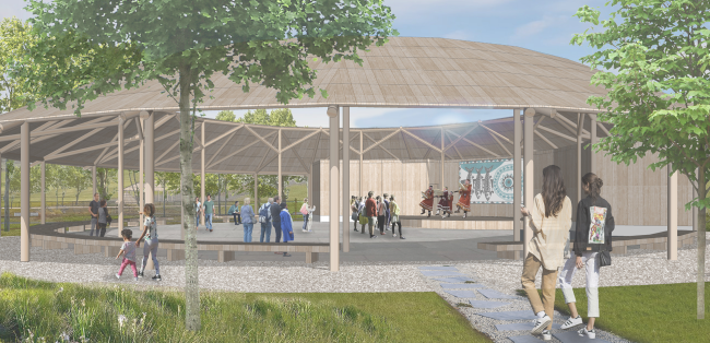 Этот проект – второй этап благоустройства бульвара «Северное сияние» в Полярных Зорях (первый этап был реализован после победы в конкурсе в 2018 году). Формы, линии и объемы – интерпретация ландшафта Кольского полуострова. Новая часть бульвара насыщена крытыми и открытыми площадками для отдыха и мероприятий, появляются новые прогулочные тропы, терраса с навесами в зоне кафе.