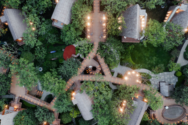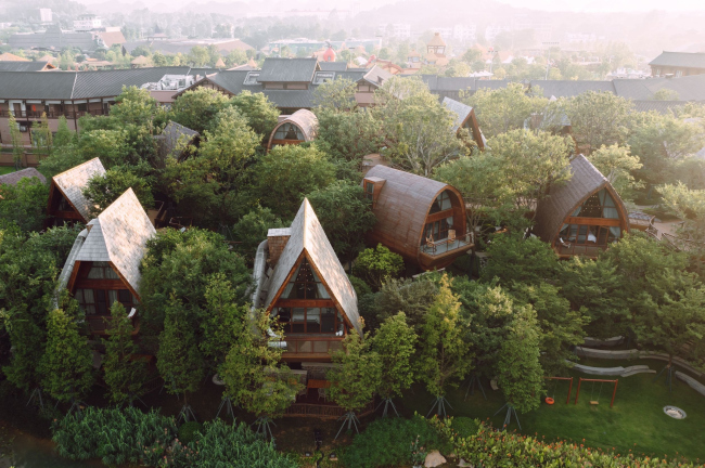 Архитекторы пекинского бюро aoe стремились обеспечить гостям приватность и близость к природе, поэтому образцом для них стали древние свайные жилища, где люди были в полной безопасности и могли обозревать окрестности.