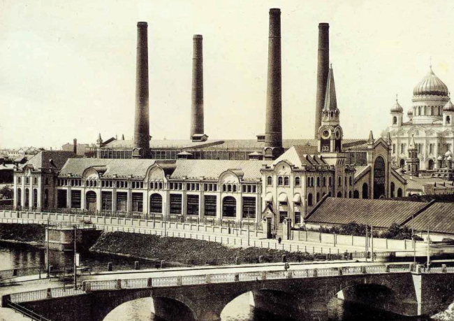 ГЭС-2 была построена в 1905–1907 годах и первоначально носила название «Трамвайная», поскольку предназначалась для питания контактной сети городского трамвая. Архитектура здания имела простую композицию, ритм которой задают широкие окна, а его декор выполнен в неорусском стиле, характерном для прошлых работ архитектора Василия Башкирова. К машинному залу примыкает здание котельной, имеющее сходство с базиликой, торцевой фасад которой подчёркнут просторной аркой. Её крышу первоначально венчала часовая башенка с шатровым верхом. В 1930-х годах она была демонтирована. Ещё один утерянный архитектурный элемент – узорчатые 62-метровые трубы котельной, которые были высочайшими сооружениями Якиманки того времени, были разобраны во время ВОВ.