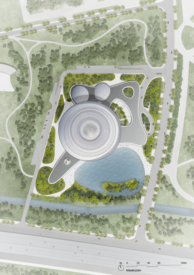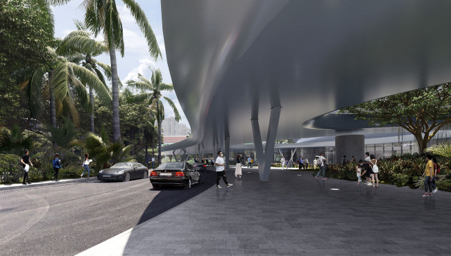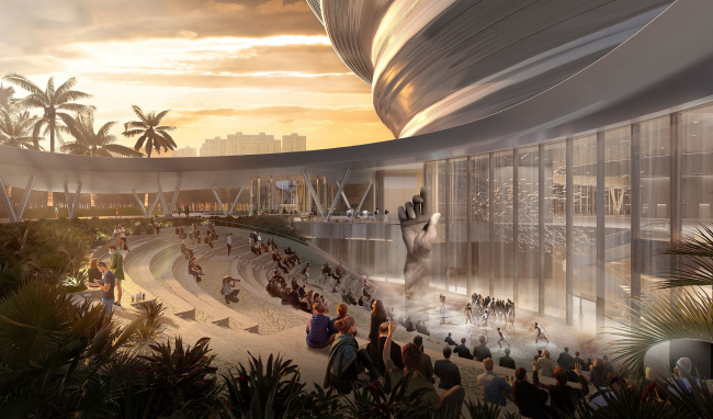 Новое здание появится в западной части города, рядом с парком и несколькими спортивными сооружениями, а также небольшим участком тропического леса. Расширяющийся кверху обтекаемый объем развивается по спирали: так снаружи читается его структура с пандусом вокруг атриума, напоминающая нью-йоркский музей Гуггенхайма Ф. Л. Райта. Материалом для фасадов выбран серебристый фиброармированный пластик.
