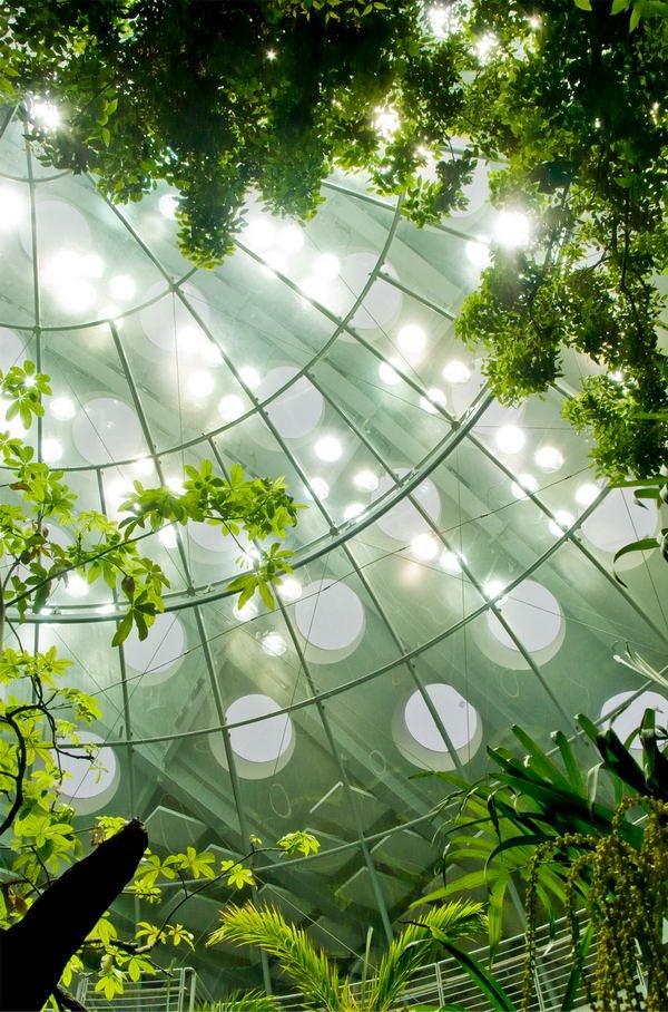 Немалая часть выставок открытой для публики части комплекса АН посвящена экологическим проблемам: загрязнению окружающей среды, исчезновению видов животных, глобальному потеплению. Само здание помогает осуществлять эту просветительскую миссию: посетители могут подняться на его зеленую крышу и узнать о множестве выполняемых ею полезных функций, включая термо- и звукоизоляцию, сбор дождевой воды и т. д. Также они увидят в склонах на первый взгляд монолитных холмов окна с автоматически открывающимися створками: их задача – улавливать ветер с океана и использовать его для естественной вентиляции залов.Калифорнийская Академия наук. Фото: BrokenSphere via Wikimedia Commons. Лицензия GNU Free Documentation License, Version 1.2
