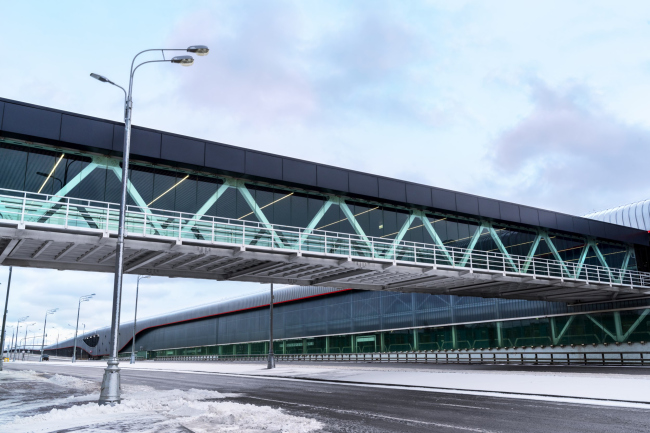 Ограждающие конструкции станционных построек были возведены с использованием фасадной системы КНАУФ АКВАПАНЕЛЬ® Наружная стена. Это конструкция каркасно-обшивных наружных стен, включающая стальной каркас из термопрофилей, наружную обшивку из плит КНАУФ АКВАПАНЕЛЬ® Наружная, внутреннюю обшивку из гипсоволокнистых КНАУФ-листов. Воздушная полость между стойками каркаса заполнена тепло-, звукоизоляционным материалом.