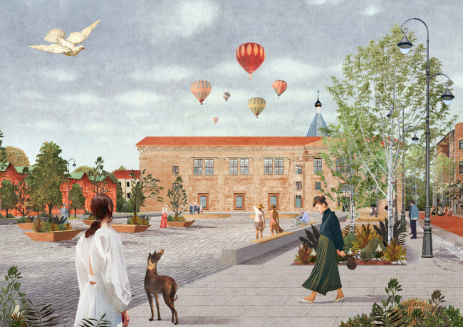 Третьим этапом запланировано благоустройство Советской площади, которая вместе с окружающими ее историческими зданиями является одной из главных точек туристического маршрута. Внутренняя территория исторических зданий, которая сейчас занята под парковку, граничит с крутым обрывом, откуда открываются широкие виды. Преобразование этой территории позволит сформировать сильную точку притяжения, которая включит в себя площадь с мощением, малыми архитектурными формами и освещением в историческом контексте с возможностью установки временной сцены и ярмарочных павильонов, а также смотровую площадку со спуском к реке.