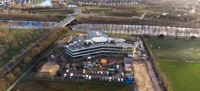 Здание школы было спроектировано RoosRos Architects и имеет нестандартную форму, представляющую из себя три крыла, которые соединяются с центральным помещением для встреч. Образовательные зоны можно использовать в дни спортивных состязаний / матчей в качестве приемных и рабочих зон для представителей СМИ и стюардов Helmond Sport. 24 апреля главный подрядчик Heerkens van Bavel Bouw закончил строительство потрясающего здания школы.