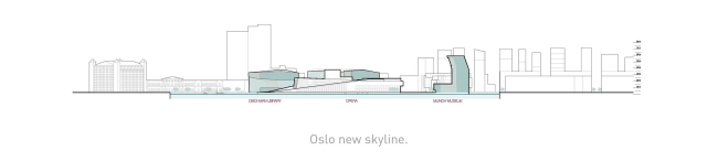 Новое здание Музея Мунка – проект прошлой или даже, если считать пандемию, позапрошлой эпохи, когда «эффект Бильбао» еще котировался у городских властей всего мира. Поэтому вполне гуманистический проект реконструкции гавани Осло «Город у фьорда» (замена промзон смешанной застройкой, помещение автомагистралей в тоннели, благоустройство набережных) включал и серию «знаковых зданий».