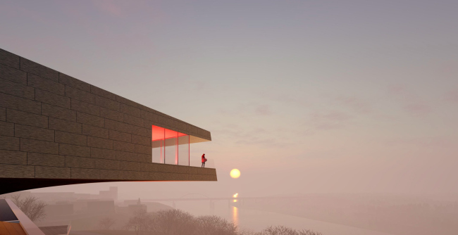 Архитектурная концепция музея современного искусства в Уфе. Вид с запада