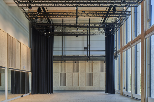 В культурном центре общественные пространства расположены по периметру, а зрительные залы – посередине. Обильное использование двойного остекления снаружи позволяет привлечь внимание прохожих – в том числе тех, кто никогда еще здесь не был. По тому же принципу стекло на фасаде гостиницы демонстрирует ее конструкцию, то есть помогает «рекламировать» постройки из дерева.
