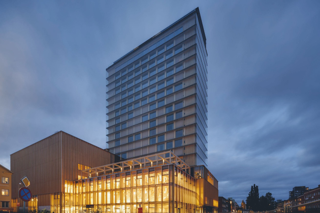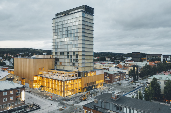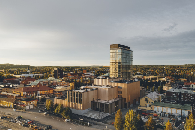 «Углеродно негативный» культурный центр в Шеллефтео на севере Швеции построен из местного дерева, включая 20-этажный гостиничный корпус. Авторы проекта – бюро White.
